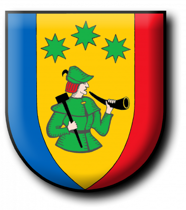 Von Blau und Rot gespalten durch eine schildförmige, gestürzte goldene Spitze, darin unter drei 1 : 2 gestellten, achtstrahligen grünen Sternen ein linksgewendeter, grün gekleideter halber Hirte, der in der Linken ein schwarzes Horn, in der Rechten einen schwarzen Holzhammer hält.